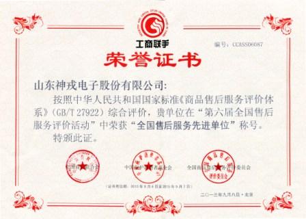 2013年9月8日,由中國商業聯合會、中國保護消費者基金會共同主辦的“第六屆全國售后服務評價活動暨售后服務高峰論壇會”在北京召開。神戎公司憑借“用戶至上,質量第一,員工為本”的企…