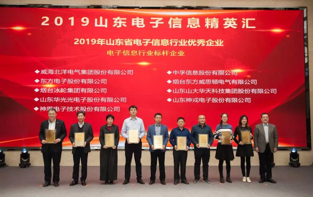 2019年12月20日,由山東電子學會、山東省信息產業協會主辦的“2019山東電子信息精英匯”在濟南成功舉辦。為表彰先進,樹立典型,山東省信息產業協會、山東電子學會共同開展了“山東省電子信息行業優秀企業”評選活動,在全省范圍內遴選67家優秀企業,其中,領軍企業(4家)、標桿企業(9家)、最具社會責任感企業(17家)、最具發展潛力企業17家)、優秀企業(20家)。