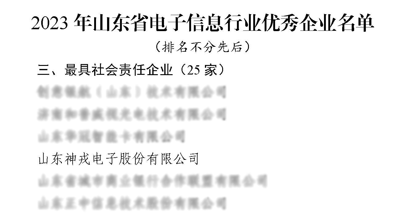2024年1月19日,2023年度“山東電子信息精英匯——數(shù)實融合創(chuàng)新發(fā)展大會”在德州市德達養(yǎng)老示范城召開,大會以“數(shù)智精英薈天衢,共鑄新質生產(chǎn)力”為主題,探索數(shù)實融合發(fā)展新路徑,塑強信息技術產(chǎn)業(yè)高質量發(fā)展新引擎,加速形成新質生產(chǎn)力,會上山東省信息產(chǎn)業(yè)協(xié)會、山東電子學會公布了《2023年度山東省電子信息行業(yè)優(yōu)秀企業(yè)及優(yōu)秀企業(yè)家名單》,山東神戎電子股份有限公司榮獲2023年山東省電子信息行業(yè)最具社會責任企業(yè)優(yōu)秀企業(yè)稱號。